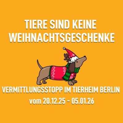 Tiere sind keine Weihnachtsgeschenke: Vermittlungsstopp im Tierheim Berlin ab 20. Dezember 2025.