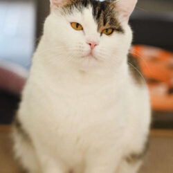 Ich bin eine zutrauliche Katze, die gern in Bewegung ist und ihre Umgebung aufmerksam erkundet. Dabei weiß ich als stolze Katze natürlich genau, was ich möchte und was nicht. Schmusen gehört grundsätzlich dazu, aber bisher möchte ich mich erstmal nur am Kopf streicheln lassen.