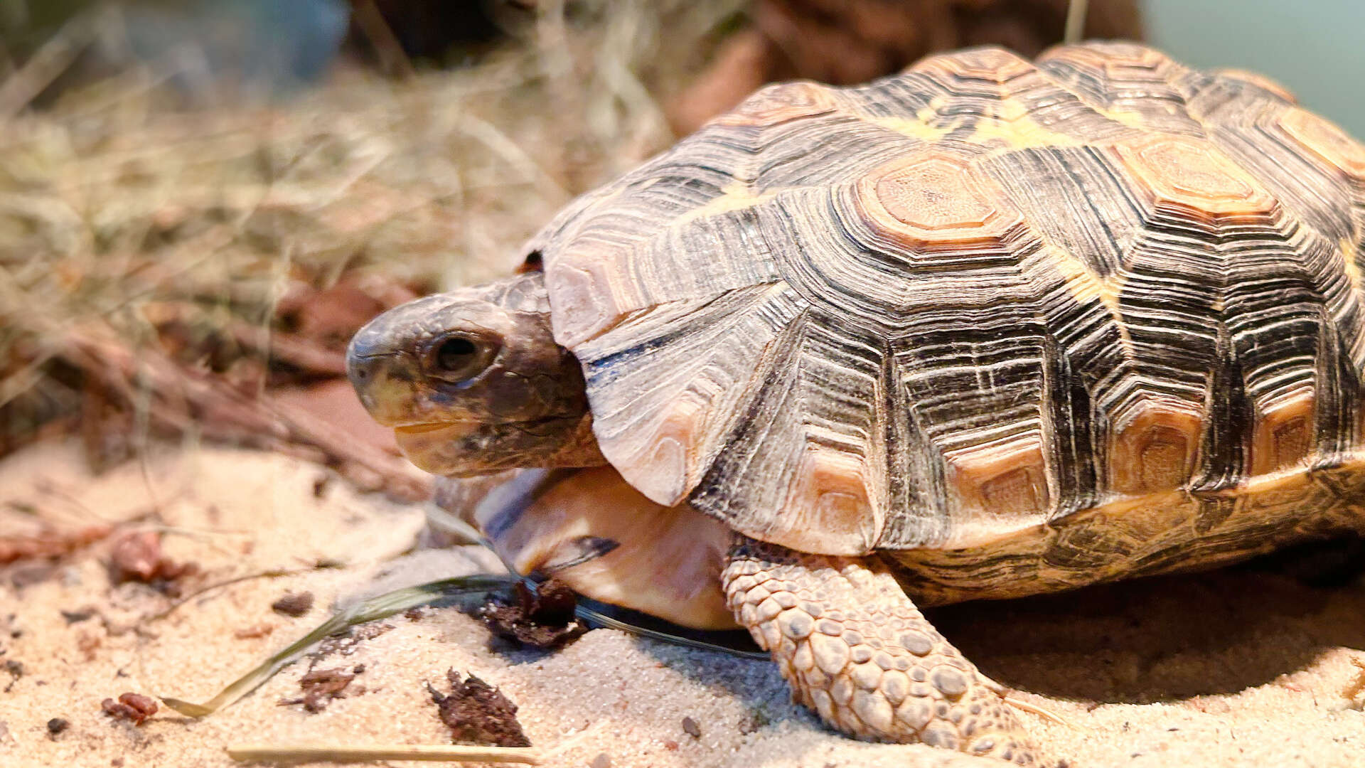… eine Glattrand-Gelenkschildkröte. Ins Tierheim kam ich wegen der Trennung meiner Menschen. Ich suche allein oder mit meinem Kumpel Ralf Rooibos ein neues Zuhause.