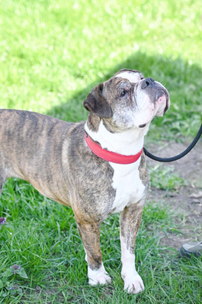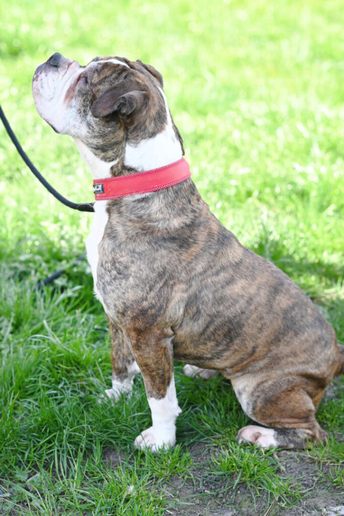 Das bin ich … ich wurde ins Tierheim gegeben, weil es leider vorher schon zu Aggressionen und zu Bissvorfällen gegenüber Menschen kam. Außerdem verteidige ich mein Futter und bringe damit ein Thema mit, mit dem man umgehen können muss. Im Tierheim reagiere ich oft gestresst und bin in neuen Situationen schnell unsicher. Rückhalt finde ich vor allem bei meinen Bezugspersonen – bei ihnen bin ich folgsam und orientiere mich gut. Trotzdem habe ich natürlich aber auch meinen rassegemäßen Dickkopf.