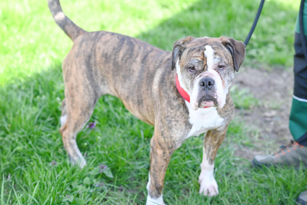 Im Tierheim habe ich schon große Fortschritte gemacht, werde aber immer ein anspruchsvoller Hund bleiben. Mit ausgewählten anderen Hunden kann ich tagsüber in einer kleinen Gruppe laufen, dabei trage ich zuverlässig meinen Maulkorb, den ich positiv verknüpfe. Grundsätzlich sind andere Hunde aber nicht so mein Ding – ich brauche sie nicht in meinem direkten Umfeld.