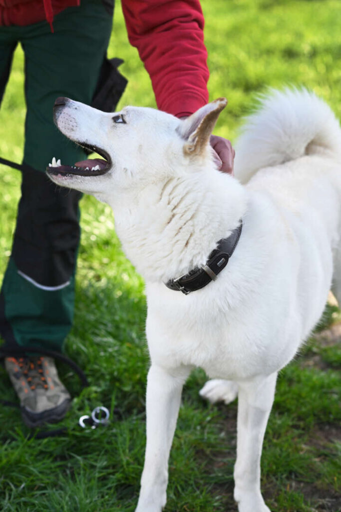 Wenn man mir aber etwas Zeit gibt, taue ich deutlich auf und lasse mich auch anfassen. Ich beobachte viel, nehme alles genau wahr und brauche einfach ein bisschen, um Vertrauen zu fassen. Mit anderen Hunden kann ich durchaus klarkommen, hier im Tierheim hatte ich sogar schon eine Hundefreundin. Draußen pöble ich nicht, bin aber insgesamt noch unsicher unterwegs. An der Leine ziehe ich aktuell noch ziemlich stark und Grundkommandos kenne ich bisher auch noch nicht.