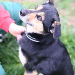 Anfangs bin ich bei Fremden skeptisch, bei Vertrauen aber sehr verschmust und verspielt. Bei meinen Menschen bin ich aufmerksam und zugewandt, draußen laufe ich gern und lasse mich an anderen Hunden ruhig vorbeiführen. Stubenrein bin ich auch. Allein bleiben kann ich vermutlich noch nicht – das müsste sehr geduldig geübt werden.