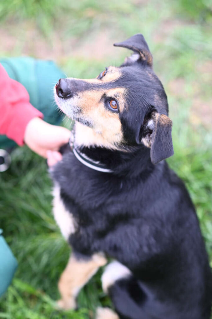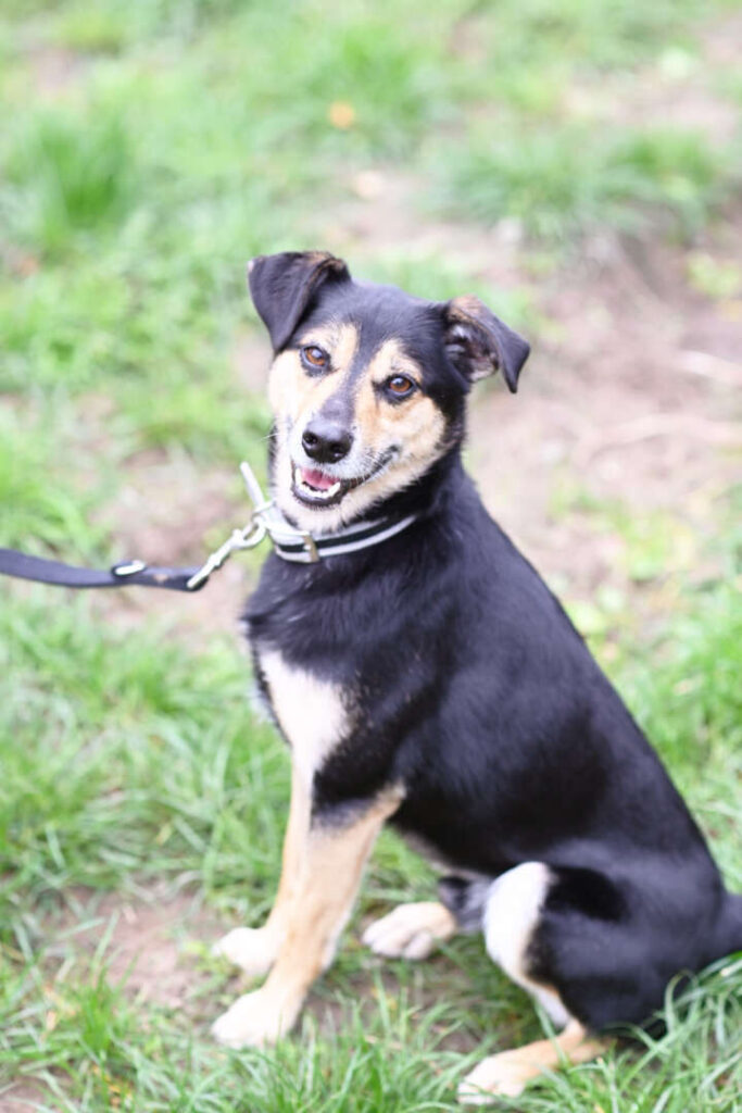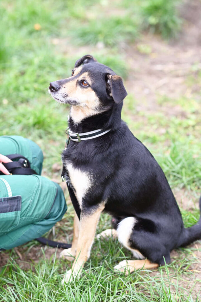 Anfangs bin ich bei Fremden skeptisch, bei Vertrauen aber sehr verschmust und verspielt. Bei meinen Menschen bin ich aufmerksam und zugewandt, draußen laufe ich gern und lasse mich an anderen Hunden ruhig vorbeiführen. Stubenrein bin ich auch. Allein bleiben kann ich vermutlich noch nicht – das müsste sehr geduldig geübt werden.
