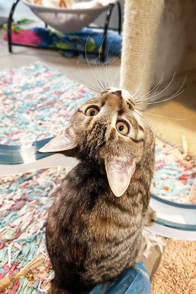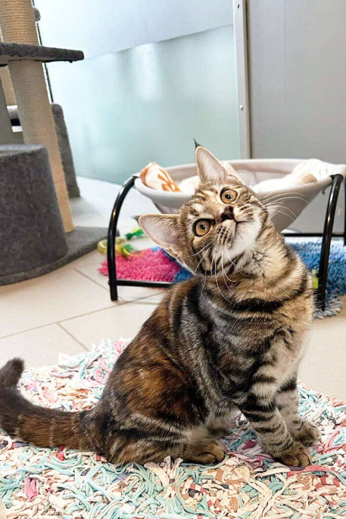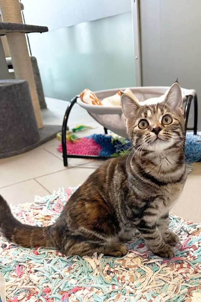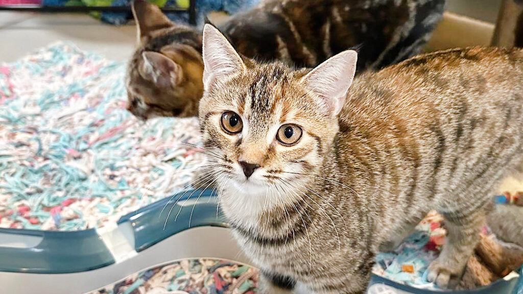 Wir sind im Tierheim geboren und haben hier unsere ersten Lebenswochen verbracht. Während unsere Geschwister bereits ausziehen durften, hatten wir bisher einfach Pech – nicht, weil wir schwierig wären, sondern weil Interessenten abgesprungen sind oder das Zuhause nicht katzensicher vorbereitet war … aber das ist natürlich wichtig für uns!