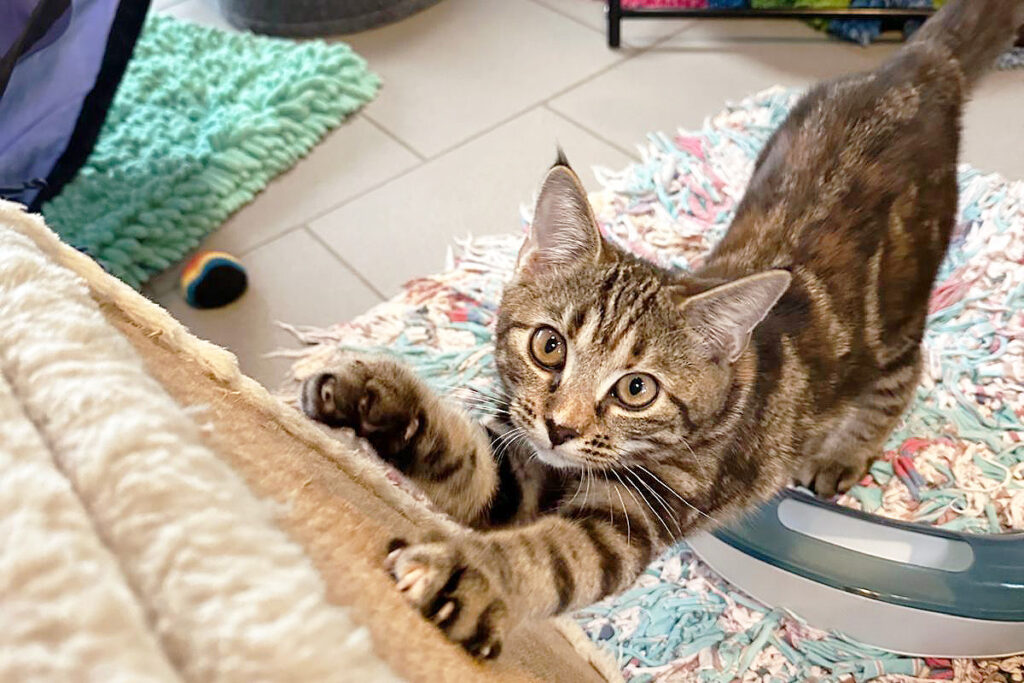 Anfangs sind wir ein kleines bisschen zurückhaltend, doch mit Geduld und liebevoller Zuwendung werden wir sehr verschmust. Wir schnurren viel, „unterhalten“ uns gern mit unseren Menschen und sind kittentypisch verspielt, aktiv und neugierig. Besonders Spielangeln haben es uns angetan – da sind wir sofort dabei.
