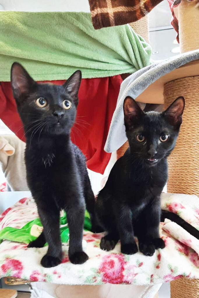 Wir sind lebenslustig, neugierig und sehr menschenbezogen – zwischen Schnurren, Schmusen und Kuscheln springen wir auch mal ganz gern auf Schultern und zupfen schon mal an Haaren. Unser absoluter Liebling: ein stabiles Katzenlaufrad. Wir wünschen uns viel zur Beschäftigung: hohe, standfeste Kratzbäume, Catwalks an den Wänden und abwechslungsreiche Spiel- und Suchrunden; Clickertraining stelle(n) wir uns auch super vor.