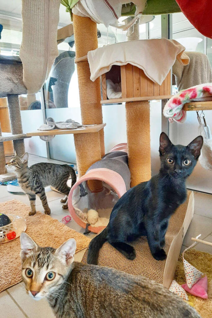 Wir sind vier kleine „Kobolde“, die jeweils mindestens paarweise ihr großes Glück suchen. Ganz winzig klein kamen wir mit unserer kranken Mama als Fundtiere ins Tierheim. Inzwischen sind wir stolze junge Katzen, die gern spielen, toben sehr aktiv sind.