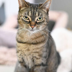 Ich wünsche mir … ein ruhiges Zuhause ohne andere Katzen oder kleine Kinder, bei katzenerfahrenen Menschen mit Zeit und Geduld. Verstecke, Kratzbäume und achtsame Streicheleinheiten wären perfekt.