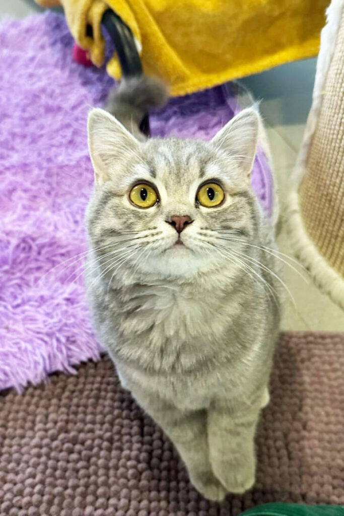 Da wir etwas kürzere Beinchen haben, werden für uns katzengerechte Kratzbäume mit Stufen, Treppen oder guten Aufstiegsmöglichkeiten empfohlen. Es sollte ein Eingewöhnungszimmer vorbereitet sein, damit wir in Ruhe ankommen können – mit stabilen Adult-Kratzbäumen, mehreren offenen Katzentoiletten, Spiel- und Beschäftigungsmöglichkeiten, Rückzugsorten sowie gut platzierten Futter- und Wasserstellen.