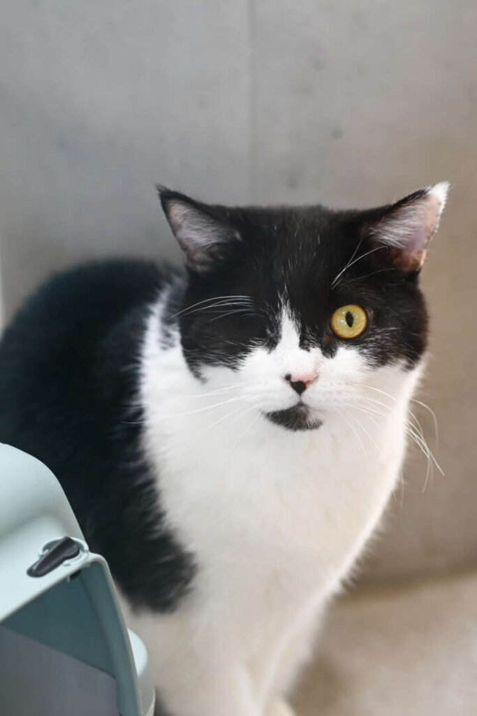 Wie man sieht, musste mir ein Auge entfernt werden – aber damit komme ich sehr gut zurecht. Auf mein Herz werde ich lebenslang kostenlos in der Tierheim-Praxis weiterbehandelt.