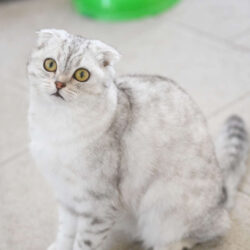Wir wurden beide jeweils gefunden und sind, wie man sieht, Scottish Folds. Das bedeutet wir sind Qualzuchten. Bei mir, Sarah (silber-getigert), macht sich das jetzt leider schon trotz meines jungen Alters bemerkbar. Es handelt sich dabei um OCD (Osteochondrodysplasie), die leider eine Folge dieser Züchtung ist – eine Gelenkerkrankung als Folge der genetischen Zucht, die zu Knorpel- und Knochendeformationen führt.